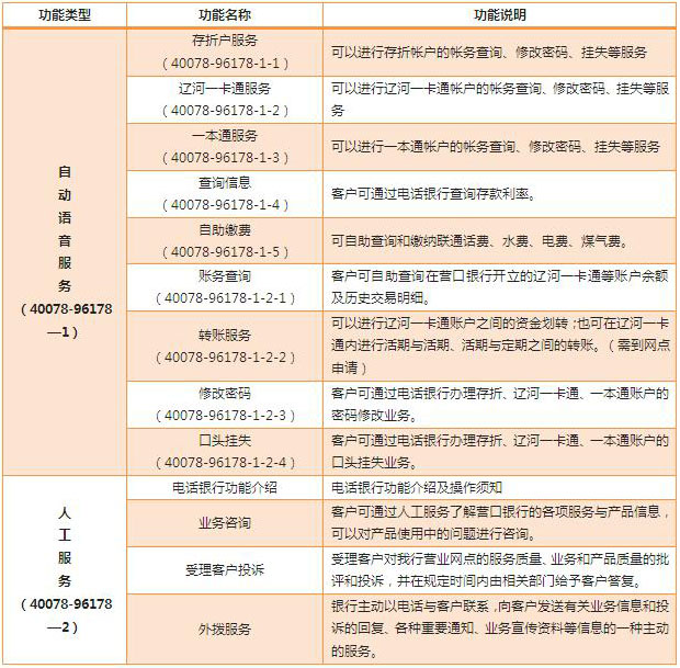 營口銀行客戶服務中心服務特色: