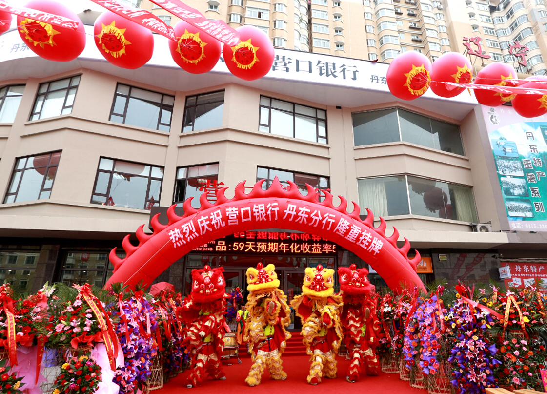 2014年11月27日,丹東市振興區(qū)錦山大街彩幔飛舞,裝飾一新的營口銀行丹東分行門前鑼鼓喧天,雄獅勁舞,賓客盈門。在一片熱烈祥和的氛圍中,營口銀行丹東分行開業(yè)儀式隆重舉行。丹東分行是營口銀行設立的第八家分行,是遼寧沿海經(jīng)濟帶金融合作的又一成果。營口、丹東兩地相關部門領導、營口銀行相關人員與企業(yè)客戶代表、新聞媒體等共計200余人參加了開業(yè)儀式。